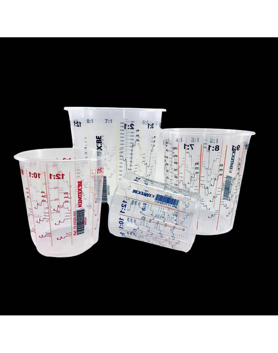 KEMTEX CUP is een plastic mengbeker met maataanduiding aan de buitenkant in de verhouding van 2 tot en met 10:1 alsook 12:1