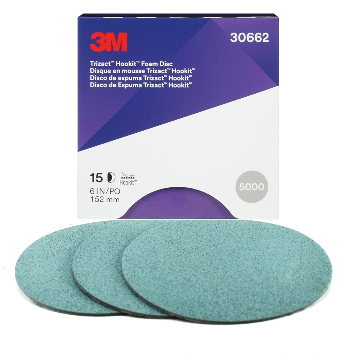 De 3M TRIZACT HOOKIT FOAM SCHUURSCHIJF is afgestemd op het verfijnen van schuurkrassen van schuurmiddelen met korrel P1500 en P2000. Hierdoor wordt de werktijd verkort. De bedoeling is om deze vochtig te gebruiken. Zo lopen ze minder snel vol en hebben ze een langere levensduur. De foam-rug zorgt voor goede schuurcontrole en een voortdurend contact met het te schuren oppervlak. Door de trizact schijven te gebruiken, vermijdt je het doorbranden of het ontstaan van hologrammen daar waar traditionele compounds dit risico wel inhouden. Ook verkrijgbaar in 3000 en 8000.