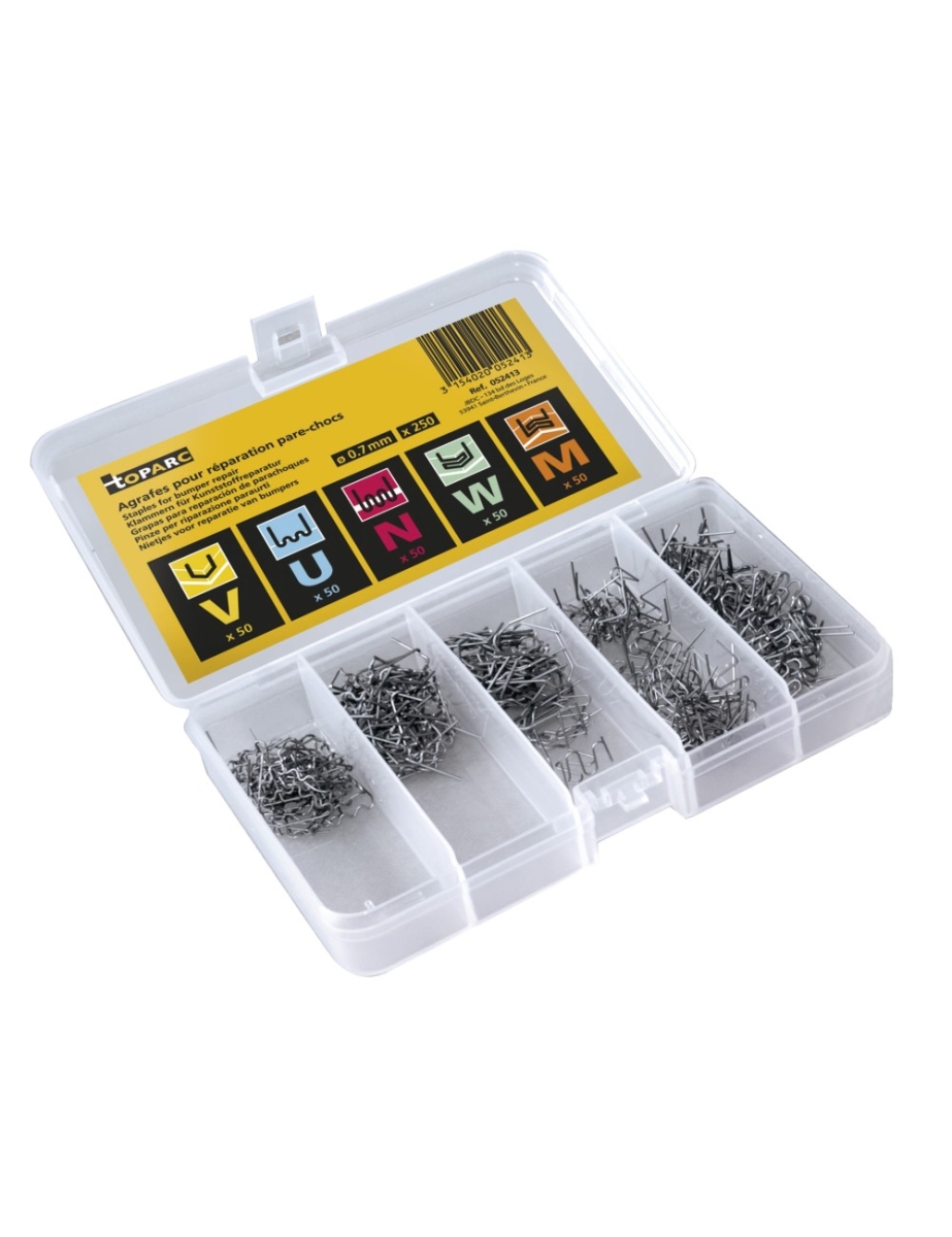 GYS nietenset (250st) voor herstellen van bumpers en andere kunststof onderdelen. Bevat 5 verschillende modellen.